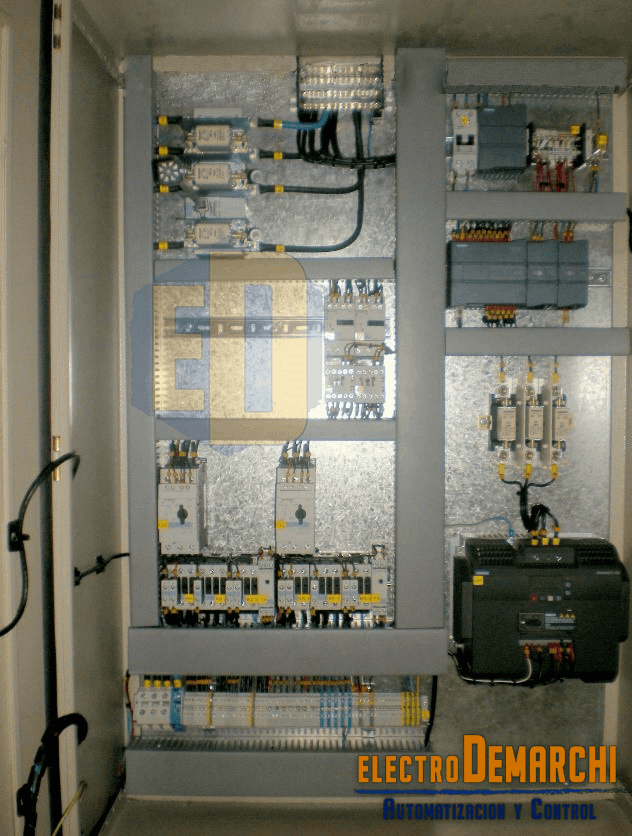 Los tableros constan de una lógica de PLC y se comanda con una pantalla HMI. Los mismos comandan dos motores de 11 Kw y un motor de 7,5 Kw, este último por medio de un variador de velocidad. La lógica por medio de un PLC SIEMENS S7-1200.